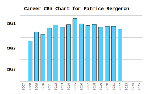 Patrice Bergeron is another player people would subjectively identify as a #1 center, and CR3 agrees. It is satisfying when an objective process agrees with subjective opinions.