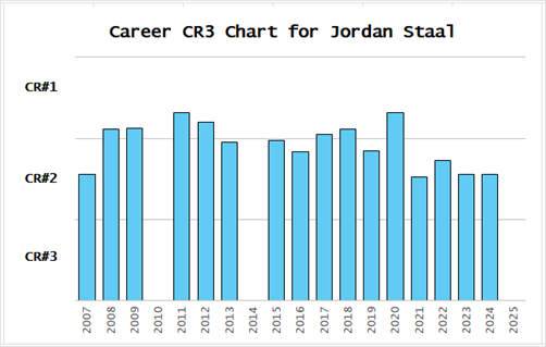 Staal’s typical CR3-Score was right around the CR#1 minimum threshold. The thresholds were established with the goal of getting about 25 #1 centers per season. While the specific values used for categories are “artificial”, that does not make them “wrong.”