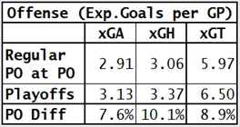 When it comes to expected goals per game, there are more in the playoffs than in the regular season.